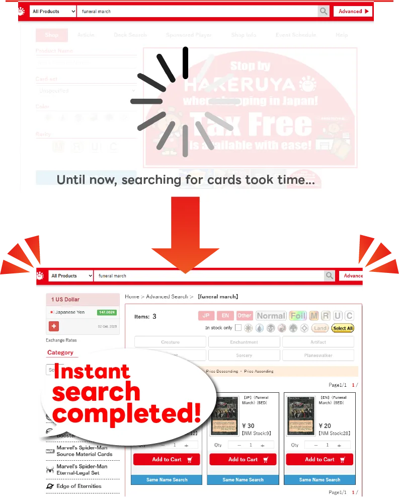 The search functionality of Hareruya’s online shop has changed this much!